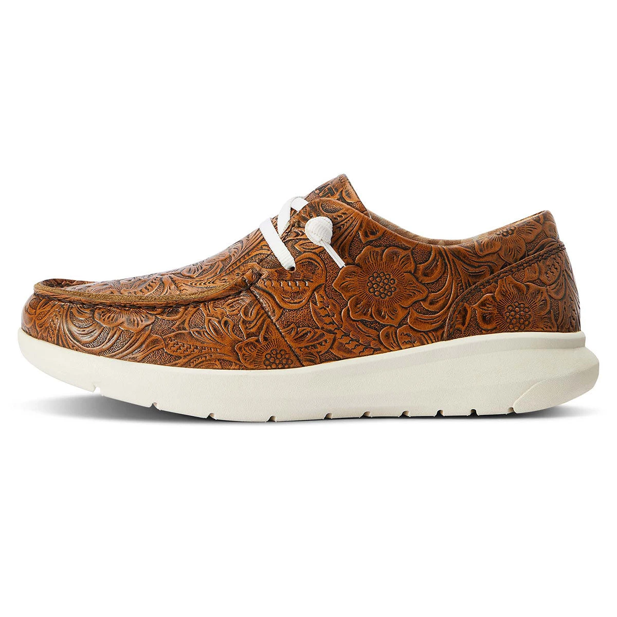 Ariat Floral Embossed Hilo Ladies Casual Shoe from the Rugged West Collection features technology providing comfort for stability and support with a unique western flair. Ariat exclusive Flx Foam midsole offers lightweight cushion and long lasting rebound for optimal comfort reducing foot fatigue. The Ariat HILO is the perfect comfortable casual shoe either slip it on or lace it up for a classic casual shoe that takes you from town to country.