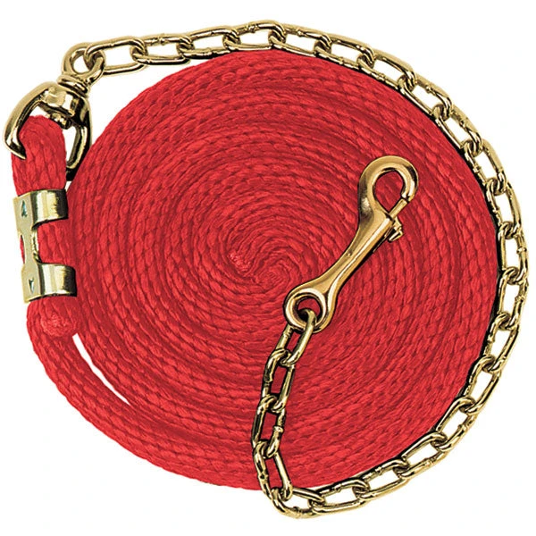 Weaver Leather Poly Lead for Horses. This premium polypropylene lead is sized for horses and ponies. Features a soft, broken-in feel you’ll love! Made with a brass plated swivel snap and brass plated 24 inch chain. Ideal length of 8 feet. Easy to grip 5/8 inch width.Â